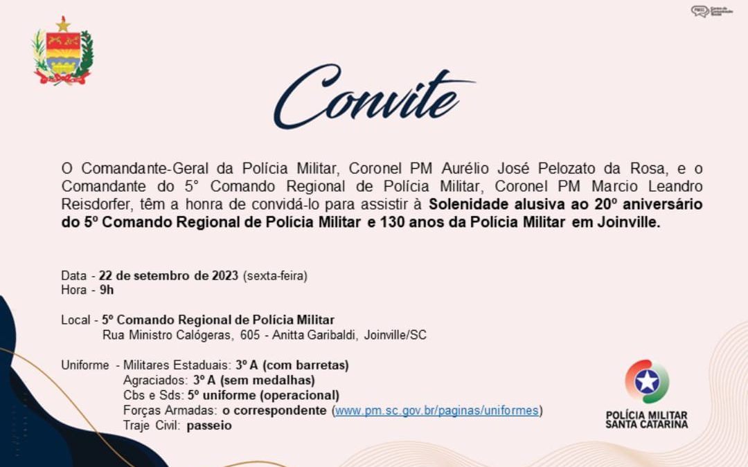 Solenidade alusiva ao 20 aniversário do Comando Regional da Polícia Militar e 130 anos da Polícia Militar em Joinville.