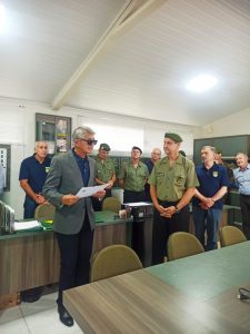 Se fizeram presente o nosso Patrono, Gen Salvador, Sgt Sebastião Ex-Combatentes da FEB, Sra. Gina Fruit (esposa do Ten Fruit), Sr. Ivo Kretzer, Secretário da ANVFEB – Jaraguá do Sul e os nobres Associados da AORESC.