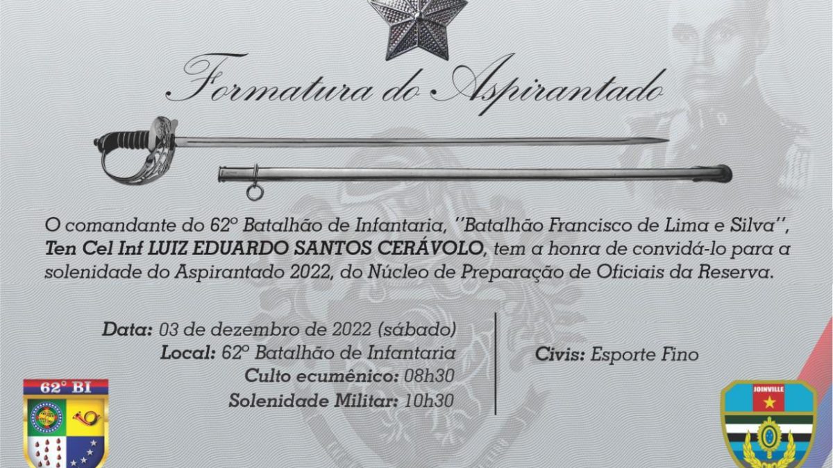 REUNIÃO GERAL AORE-SC – 28/Novembro/202222 de novembro de 2022Natal Solidário AORE/SC – Joinville – 11/Dezembro/20223 de dezembro de 2022 Solenidade Militar do Aspirantado – 2022