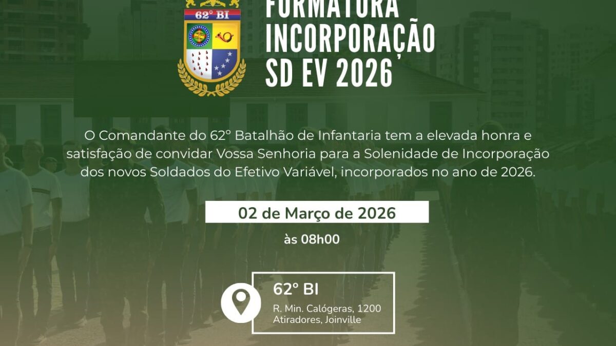 Convite para Formatura de Incorporação do Efetivo Variável (recrutas) do Nosso Batalhão-2026.