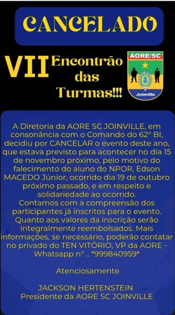 CONVITE – VISITA A 2ª Cia BAPM Está agendada, com o TC Marcelo Screpanti Borges MONTEIRO, Cmt da 2ª Companhia do Batalhão de Aviação da PMSC (GRAER), […]