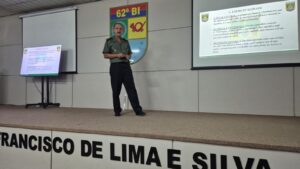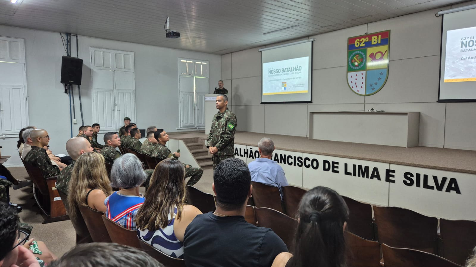 Em ato contínuo, aconteceu a Aula Inaugural no Auditório pelo Presidente da AORE/SCe Cmt do 62ºBI, TC Modesto.