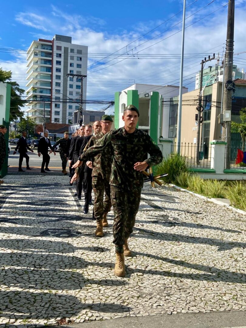 Iniciou com a entrada dos Alunos pelo Portão das Armas no pátio do 62ºBI (paisanos).