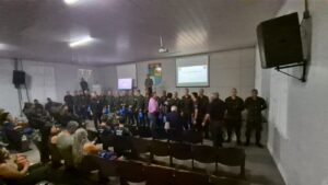 Presentes, o Presidente da AORE/SC-Joinville, Diretores, Presid e Vice do Conselho Deliberativo e Associados, com destaque para os Aspirantes de 2024/2025.