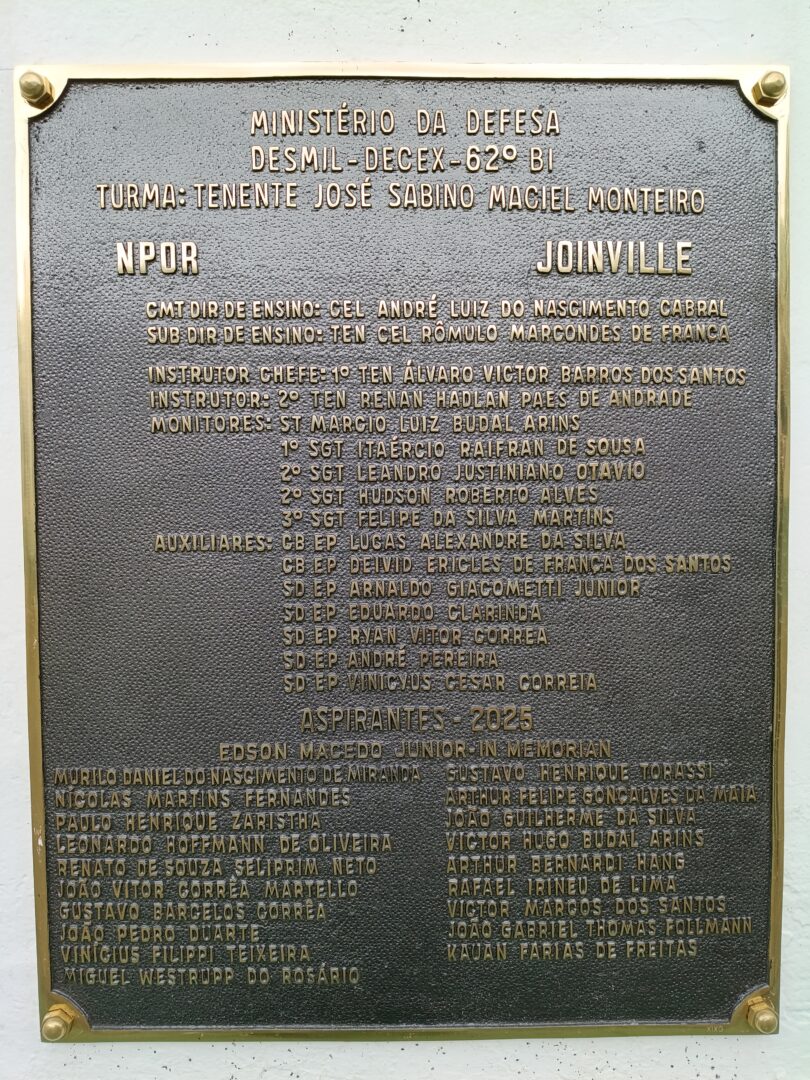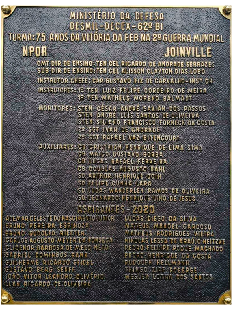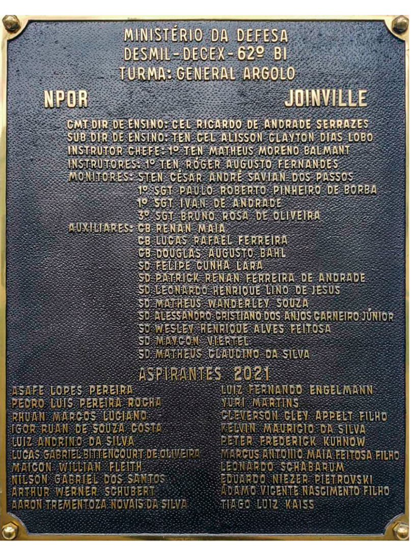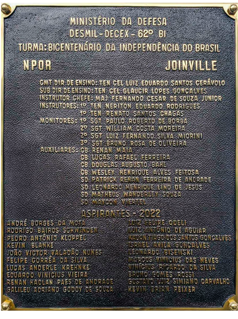 - Placa comemorativa dos 20 anos, junto da foto da turma, na sala de instrução do NPOR/62BI